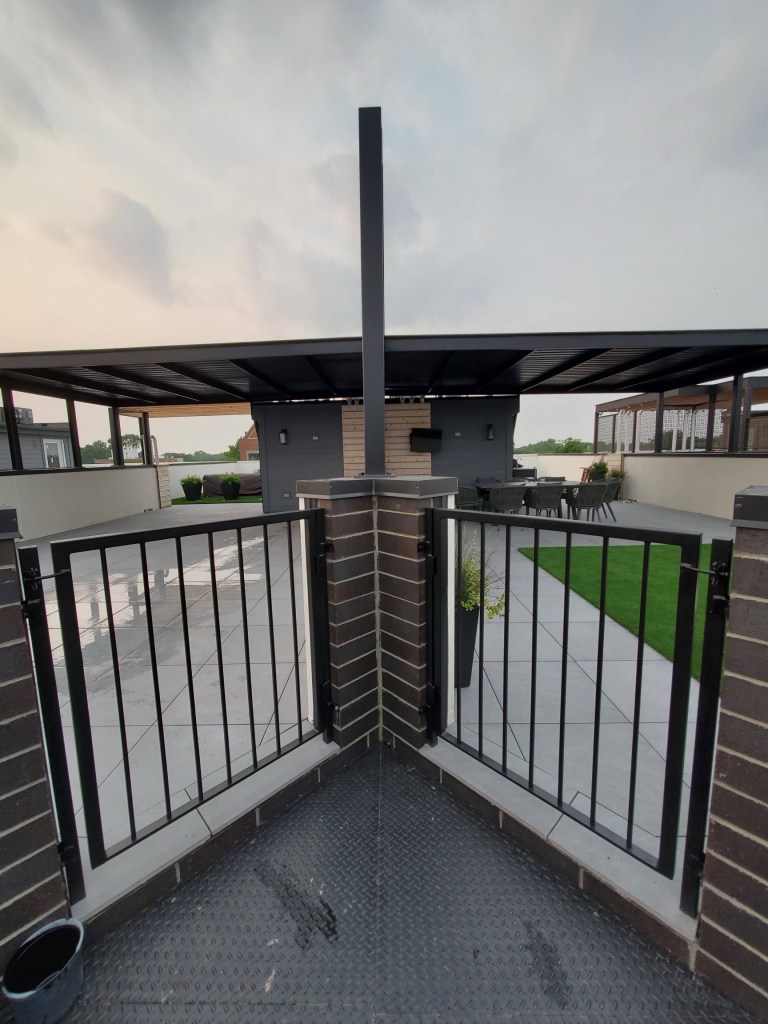 We are experts in manufacturing and installing structures, I-beams, pergolas, sliding gates, decks, porches, fences (metal, wooden, combined) single and double gates, AC guardrails, handrails (interior and exterior) parkway fence, balcony railing, Chicago IL.